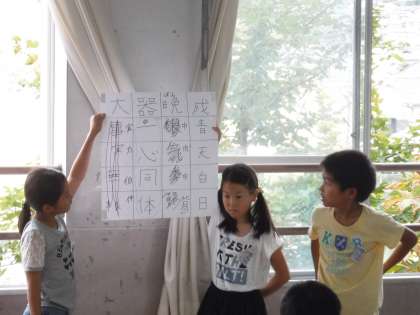 自分たちの考えた漢字しりとりをみんなにうまく伝えられるかな。