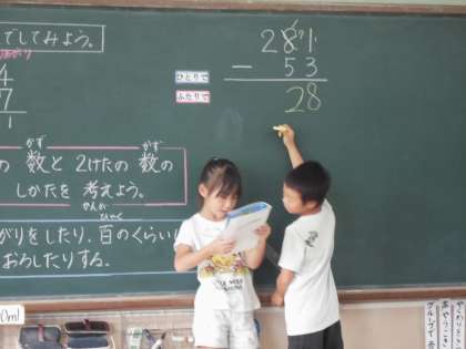 たし算ひき算の筆算(2)の学習が終わろうとしています。