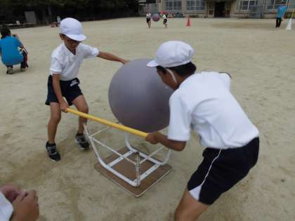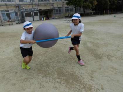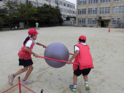 2年生の運動会の団体競技は「わくわく!ボールリレー」です。