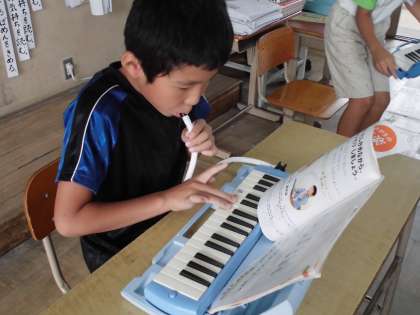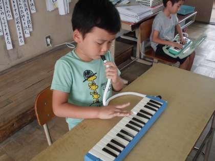 自分で考えた旋律を使って,演奏しました。
