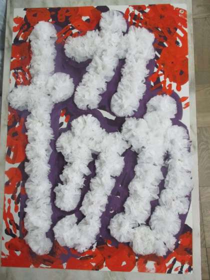 6年1組の担当の文字です。全校で合わせると,運動会のスローガンが完成します。