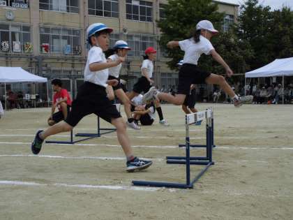 去年はゴムのハードルでしたが,今年は普通のハードルになりました。頑張っています。