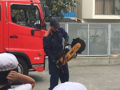 その中にある道具の1つ,救助に使う「電動のこぎり」が動くところも見せていただきました。