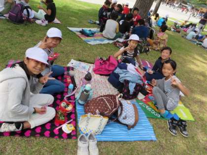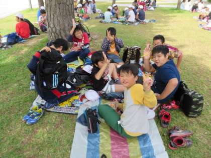 やっと公園に着きました!芝生もあってきれいなところです。早速お弁当タイムです!