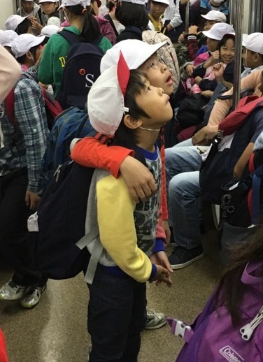 4年 秋の遠足 行きの電車