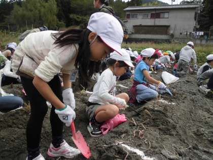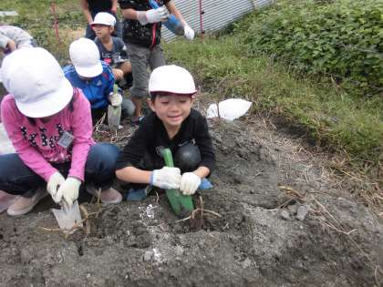 土が硬くなかなかサツマイモが出てきません。それでも,子どもたちは一生懸命スコップを使って掘っていました。