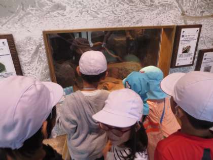 いろいろな動物に見入っている子どもたち。