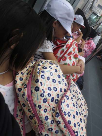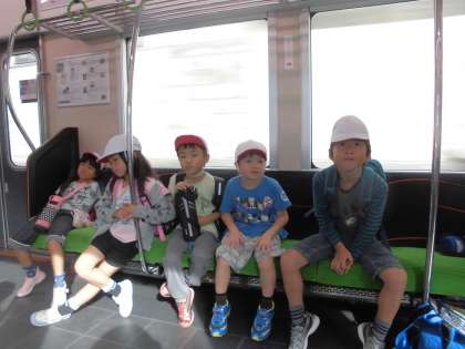 たくさん活動した後は,電車に乗って学校へ帰ります。