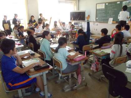先日の社会科の学習には、京都教育大学の学生さんが見学しに来られました。