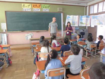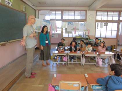 まずは自己紹介をしていただきました。名前や住んでいるお家のこと,お仕事,出身国のイギリスについて教えてもらいました。特に子ども達は,イギリスの天候が一日のうちでも変わりやすいことを聞いて「へえ〜。」と感心していました。。