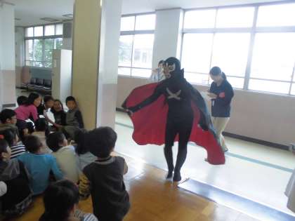 ムシバマンに扮した先生が登場した時には,全員が「きゃ〜〜!!」とびっくり!!