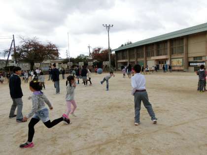 中間休みにも,運動場で中学生と一緒に遊びました。