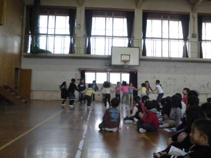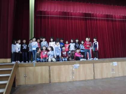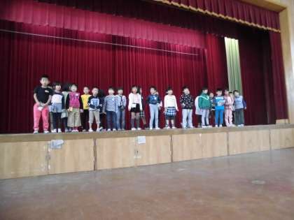 学年で「くじらぐも」の音読発表会をしました。どのクラスも,今までに練習してきた成果を十分に発揮することができました。くじらぐも役の子どもたちが舞台の上に上がったり,声の大きさや高さ・速さを工夫したりして,想像を膨らませながら音読をすることができました。