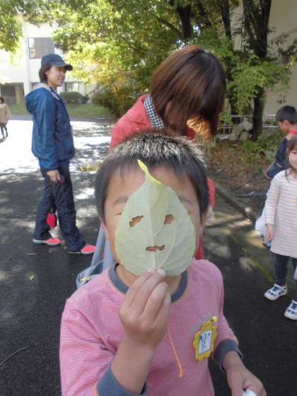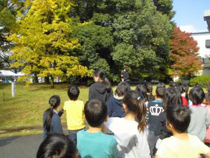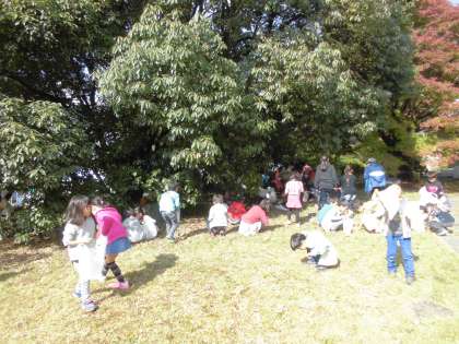 11日(金)に生活科の学習で,京都教育大学に秋見つけにでかけました。赤や黄色にそまった大きな木を見て,子どもたちは「わあ!きれい!!」とびっくりしていました。早速,「秋の宝物」であるどんぐりや紅葉した葉っぱを大切に一つ一つビニール袋に入れていきました。宝物をたくさん見つけた子どもたちは「先生!見て見て!こんなん見つけたよ!」と大満足。さあ,これからこの宝物を使って何をしようか・・・と考え中です。
