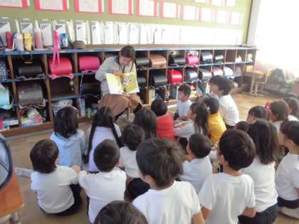11月は読書月間です。今日は2年生の先生に絵本を読んでもらいました。どの子も先生のお話をしっかりと聞き,絵本の世界に入りこむことができたようです。