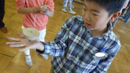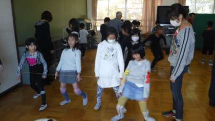 またオープンスペースでは,コマ遊びやゴムとびなども教えてもらい,夢中になって遊んでいました。