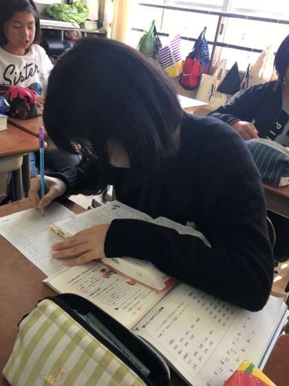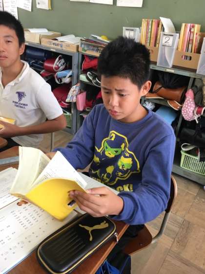 調べた言葉の説明を読んで、さらに言葉の意味を調べる・・・。そんなことの繰り返しが多々あります。しかしその繰り返しによって、調べる速さ、索引の方法にも慣れていくものです。「前にも調べてたわ!」という笑い声もちらほら・・・。やっぱり辞書で調べることは楽しいものです。