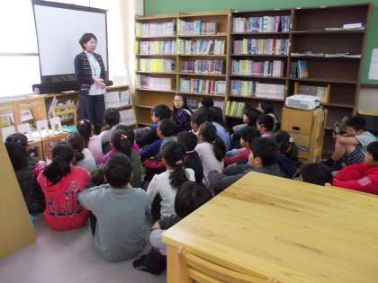 今日は図書室でのブックトークの日。