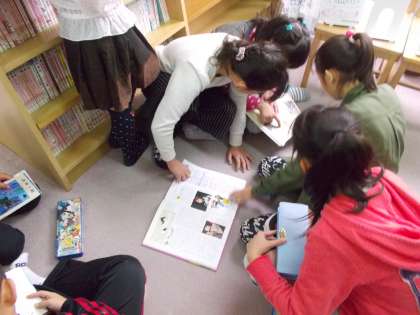ブックトークが終わってからも、子どもたちは興味を持って、紹介された本へと足を運んでいました。