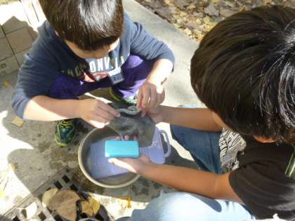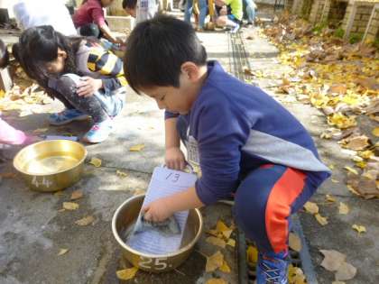 昔話でみたことがあるそうで,上手に使うことができました。予想よりもきれいに落ちる!と子どもたちは大喜び。毎日でもしたいと言っていました。