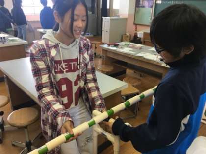 作用点の位置を変えると、力点にかける力はどのように変化するのでしょうか?手ごたえが変わっていくことを確かめてみましょう!