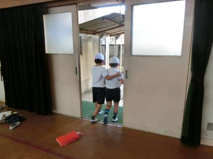 友だちが保健室に行くときに,付き添ってくれている後ろ姿です。