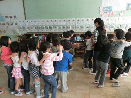 みんなで頑張って目標を達成できたので,お祝いにみんなでやりたい遊びを楽しみました。今回の遊びは貨物列車です。本当に楽しそうです。みんなで目標に向かうって,いいですね。