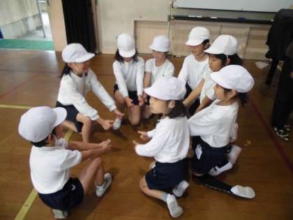 曲の途中で,友だちとポーズを合わせるところをつくったり,ハイタッチするところをつくったりすると,さらに楽しくなるようです。