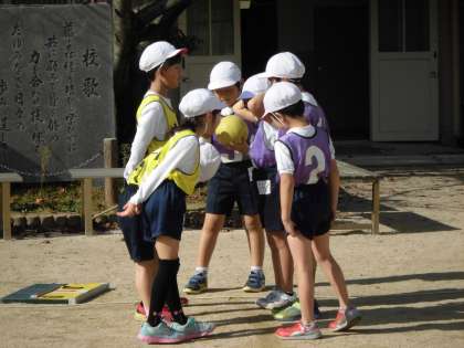 学習の振り返りでは,「○○さんのかけ声がとてもよかった。」「あきらめたらあかん!といわれて,さいごまでがんばれました。」「パスをたくさんまわせました。」など,しっかりボールを追いかけたり,パスを回したりできたことを学習カードに書いていました。