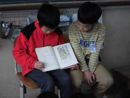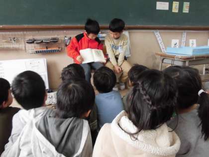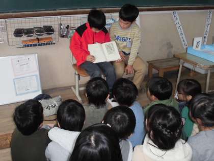 朝読書の時間に,本係が読み聞かせをしてくれました。