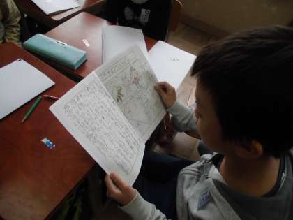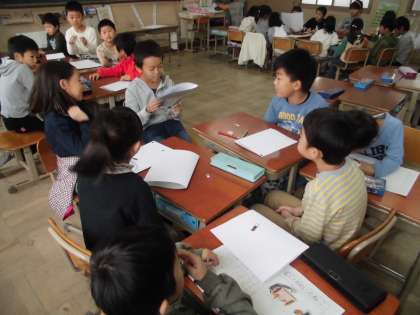 国語科では「スーホの白い馬」の学習後,世界の民話の本を読み,自分の選んだ民話の本について交流しました。