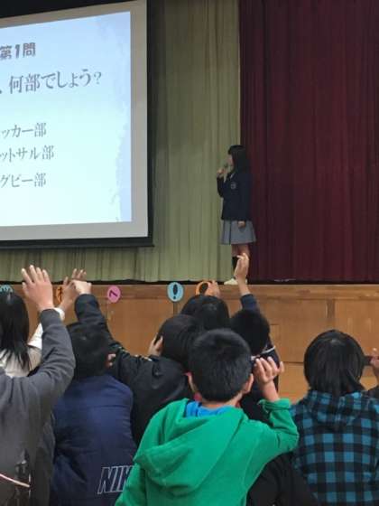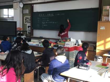 藤森中学校の学校のきまりや部活動の紹介などがあり、興味津々です。その後は中学校の先生の授業です。これまた緊張でした。