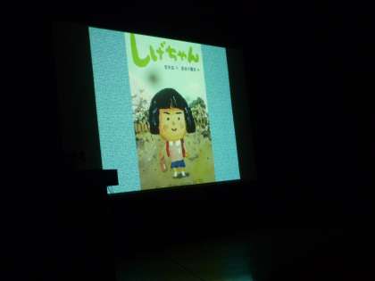 最初,表紙の絵を見た子どもたちから笑い声。その後,読んでいくうちに静かに目と耳を集中させていました。自分につけられた名前から,男女平等について,いじめについて考えさせられる内容です。私自身読んでいて一番心にぐっときたところは,お母さんがしげちゃんをだっこしながら,「しげちゃん、親が子どもに名前をつけるときってね、そりゃあ一生けんめいなのよ。ずっとずーっと、その名前で生きていくんだもの、ぜったいにこうかいしない名前にしなくっちゃあならないでしょ?お父さんもお母さんも、子どもが一番しあわせになれそうな名前を考えるものなのよ」という場面です。
