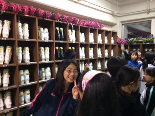 夜のオリエンテーションはスキー靴のサイズ合せです。