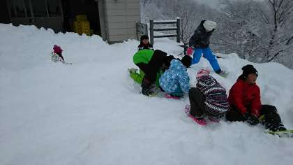 スノーシューをはいて,雪遊びを始めました。