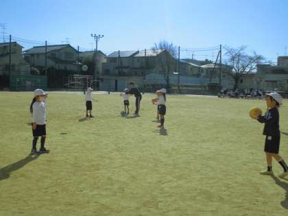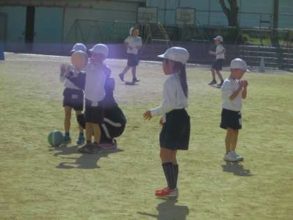 今日はパスゲームの練習をしました。ペアになり,自分の胸から相手の胸に向けてボールを投げる「チェストパス」に取り組み,みんなが上手にできるようになりました。