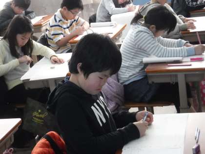 集中して問題を解く姿が真剣そのものです。