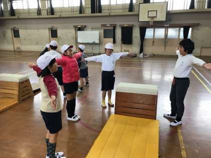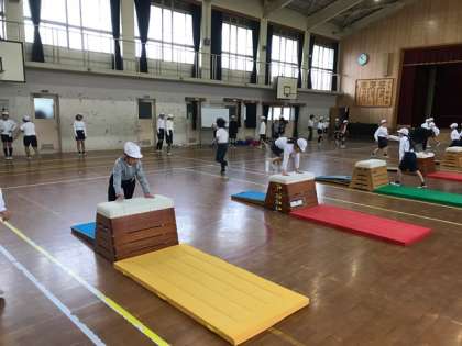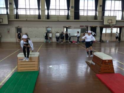 体育科で跳び箱運動にチャレンジしています。1年ぶりなので、少しドキドキしていましたが、元気に取り組んでいます。