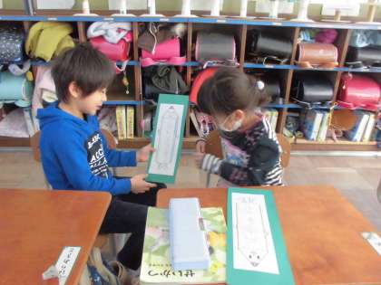 1年生も早いものであと2か月となりました。今日は,入学して初めて書いた自分の名前の字を見直し,自分の成長を感じたり,これまでの行事や出来事を振り返ったりしました。