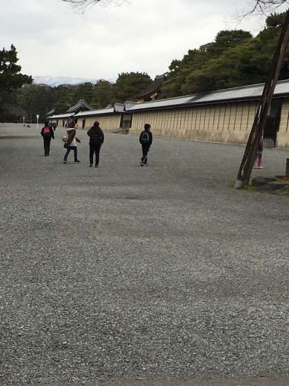 京都御所は広い!「なんか、大名行列が見える気がする!」という声も聞かれました。自分たちの住む京都なのに、雰囲気が違うように感じました。