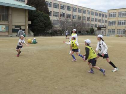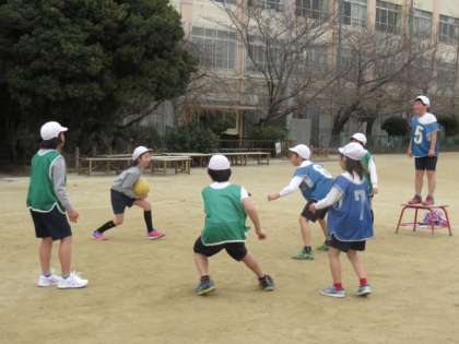今日はとても寒い日でしたが,体育でポートボールをしました。準備も素早く,すぐにゲームが始まります。