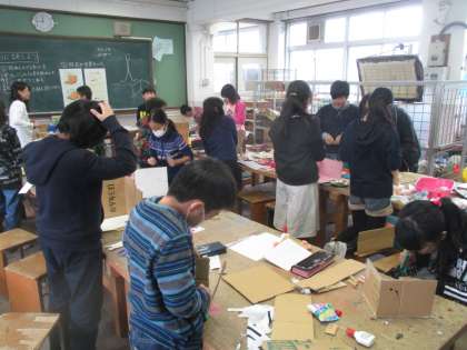 いろいろな材料を使って,自分の思いを膨らませて作品を作っています。
