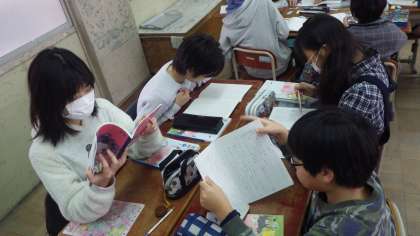 それぞれの随筆が,よりよいものとなるようにアドバイスの時間があります。人に読んでもらうことで,自分では気付かなかった部分に気付くことができますね。