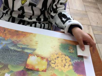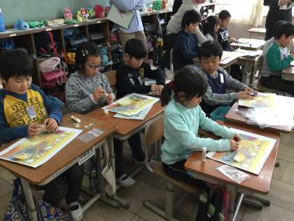 最後は自分の集めたカードを貼って絵本の1ページを作成します。自分の頑張った証のカード。大切に貼っていました。