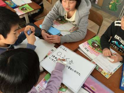 自分の考えをもった後,グループで話し合って考えを深めました。