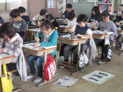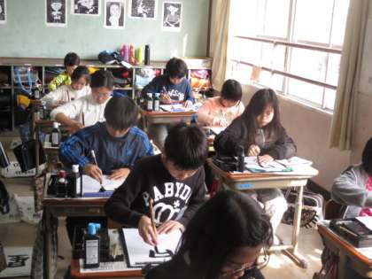 今日は「星」という字を書きました。姿勢は「グー・ピタ・ピン」の合図ですっと伸び、シ〜ンとした時間が流れます。