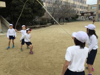 体育の学習だけでなく休み時間や放課後にもみんなで大繩をしている児童の姿がよく見られるのがうれしいです♪