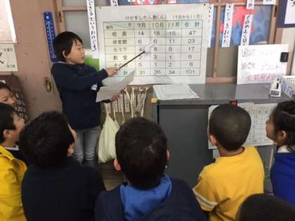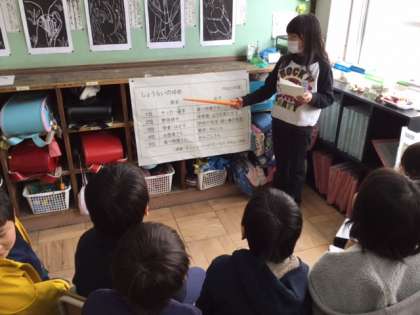 今日は発表の日,話の間や資料の提示を工夫していてしっかりと自分の意見を発表できていました。