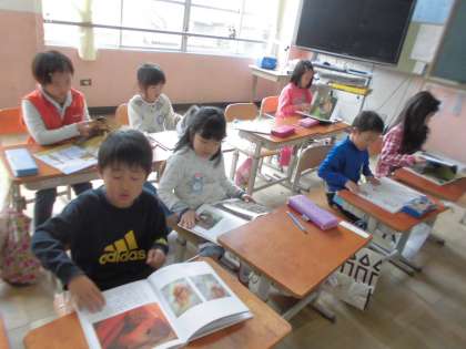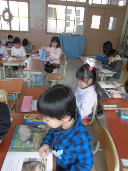 国語科では「どうぶつの赤ちゃん」を学習しています。教科書で学習した後,自分のお気に入りの動物の赤ちゃんについて発表をするため,絵本や図鑑を調べています。