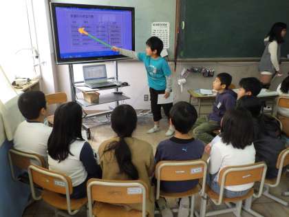 指し棒を使って,話しているところ示しながら上手に話しています!